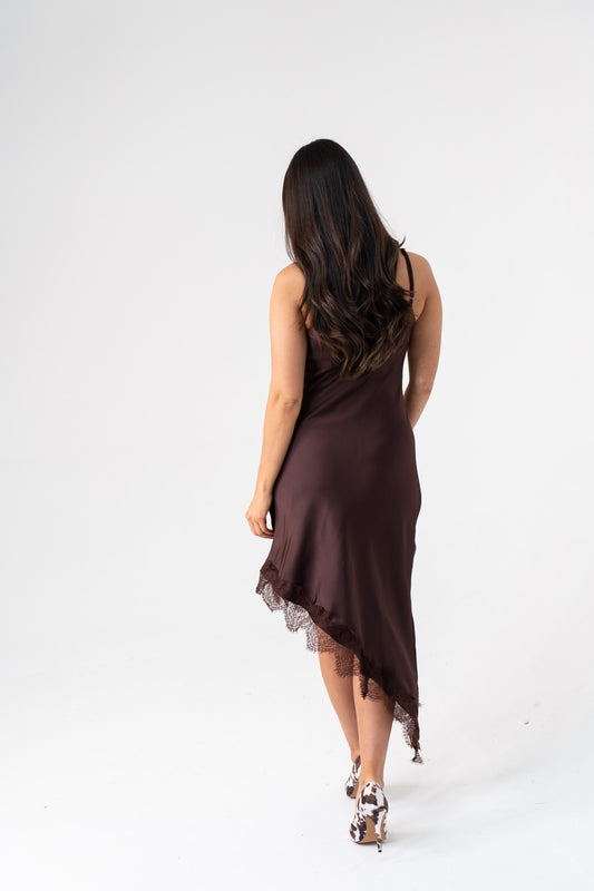 Love Laura Square Neck Velvet Dress In Chocolate