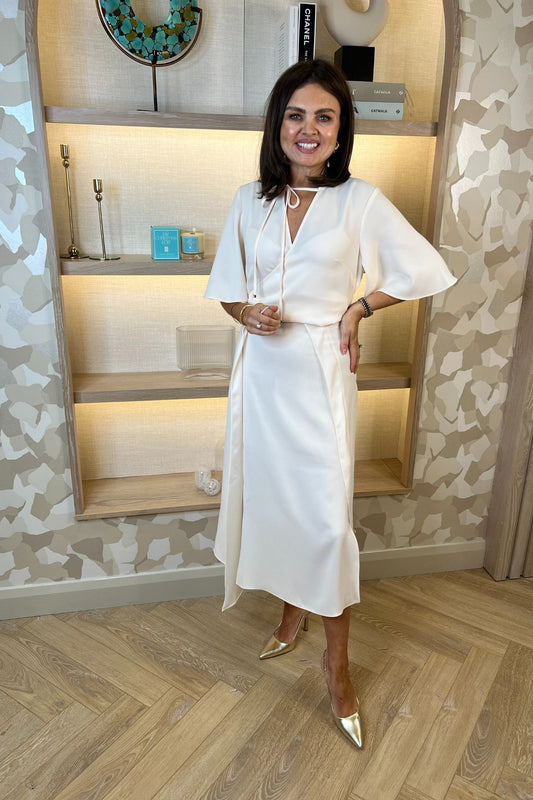 Kayla Overlay Detail Dress In Cream