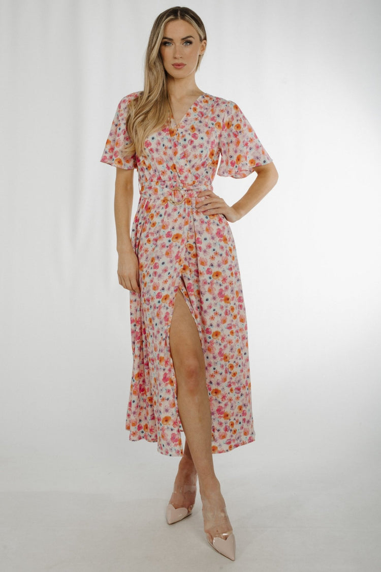Ally V-Neck Floral Midi Dress In Pastel Mix