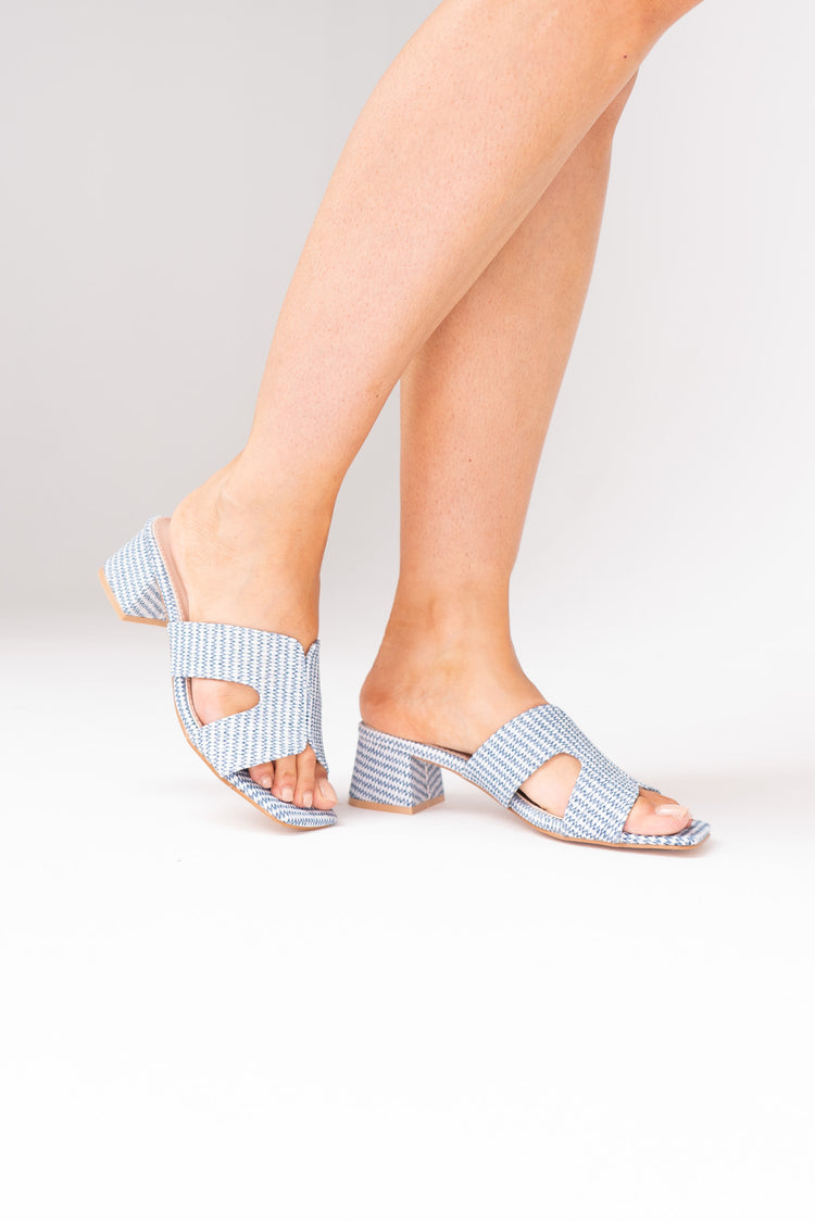 The Cathy Striped Mule in Blue offers a stylish blend of design and comfort. Featuring an open toe and block heel, it ensures both breathability and stability. The stitched stripe pattern combined with cut-out details adds visual interest and a modern edge. Crafted to complement a variety of outfits, this blue mule is an expert choice for those seeking a distinctive yet versatile footwear option.