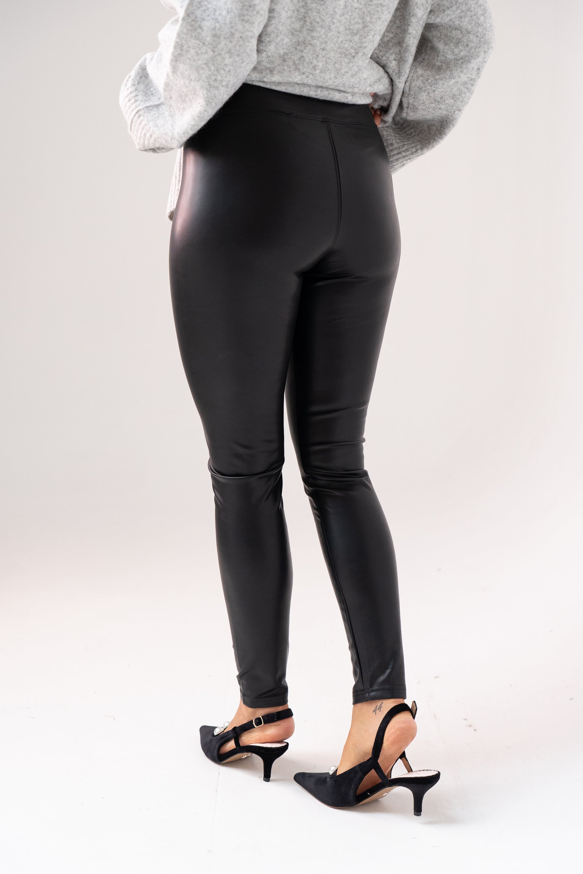 Freya Leather Look Jeggings In Black combine contemporary style with practical comfort. Crafted from synthetic stretch fabric, these jeggings deliver a sleek faux leather finish that elevates any casual outfit. The skinny leg silhouette flatters the figure, whilst functional jean-style buttons and pockets provide authentic detailing and everyday practicality. The stretch composition ensures freedom of movement throughout the day, making these versatile jeggings perfect for both relaxed weekends and smart-casual occasions.