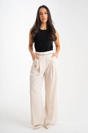 Grace Contrast Waist Trousers In Neutral