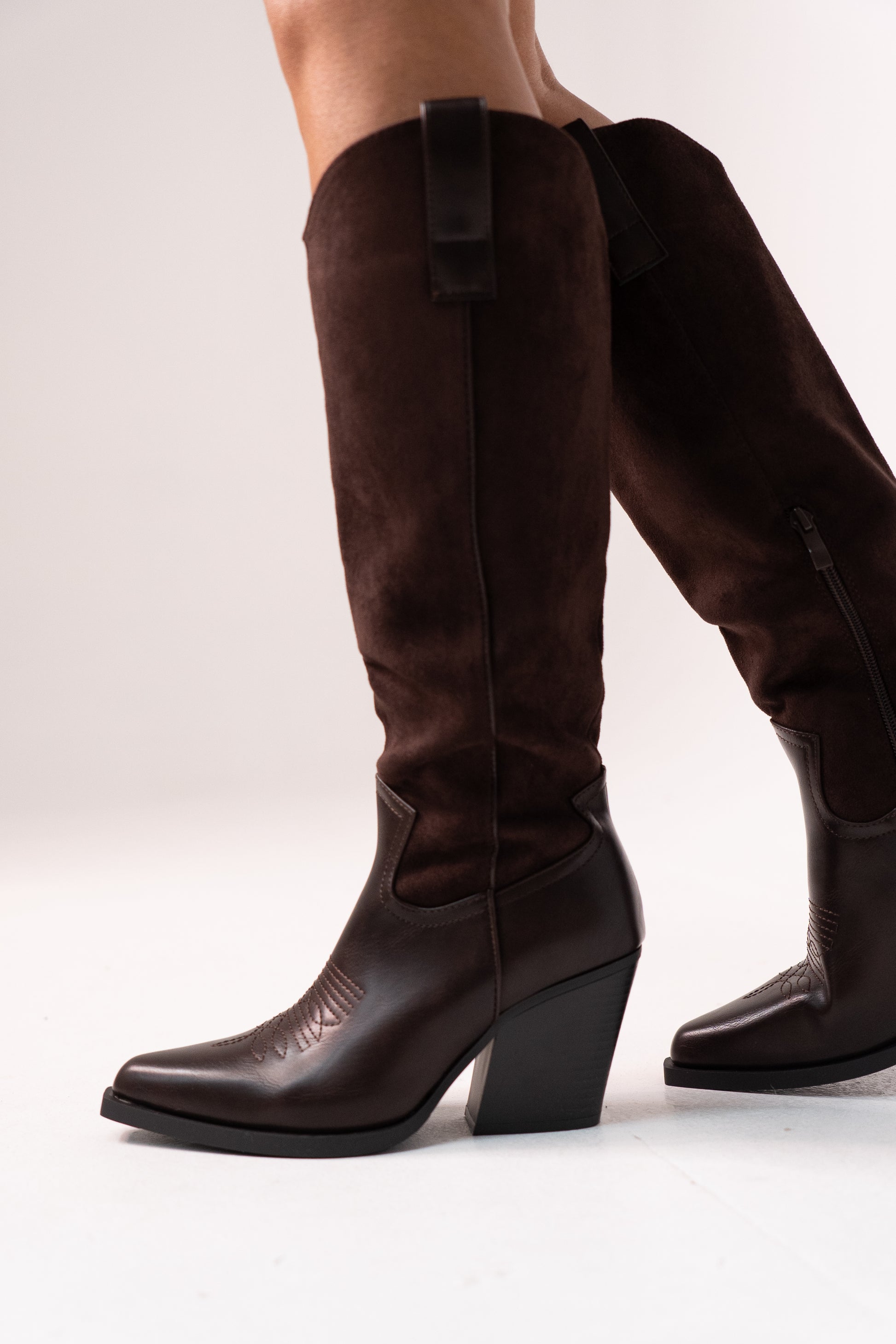 Izzy Bi Material Western Boots In Chocolate