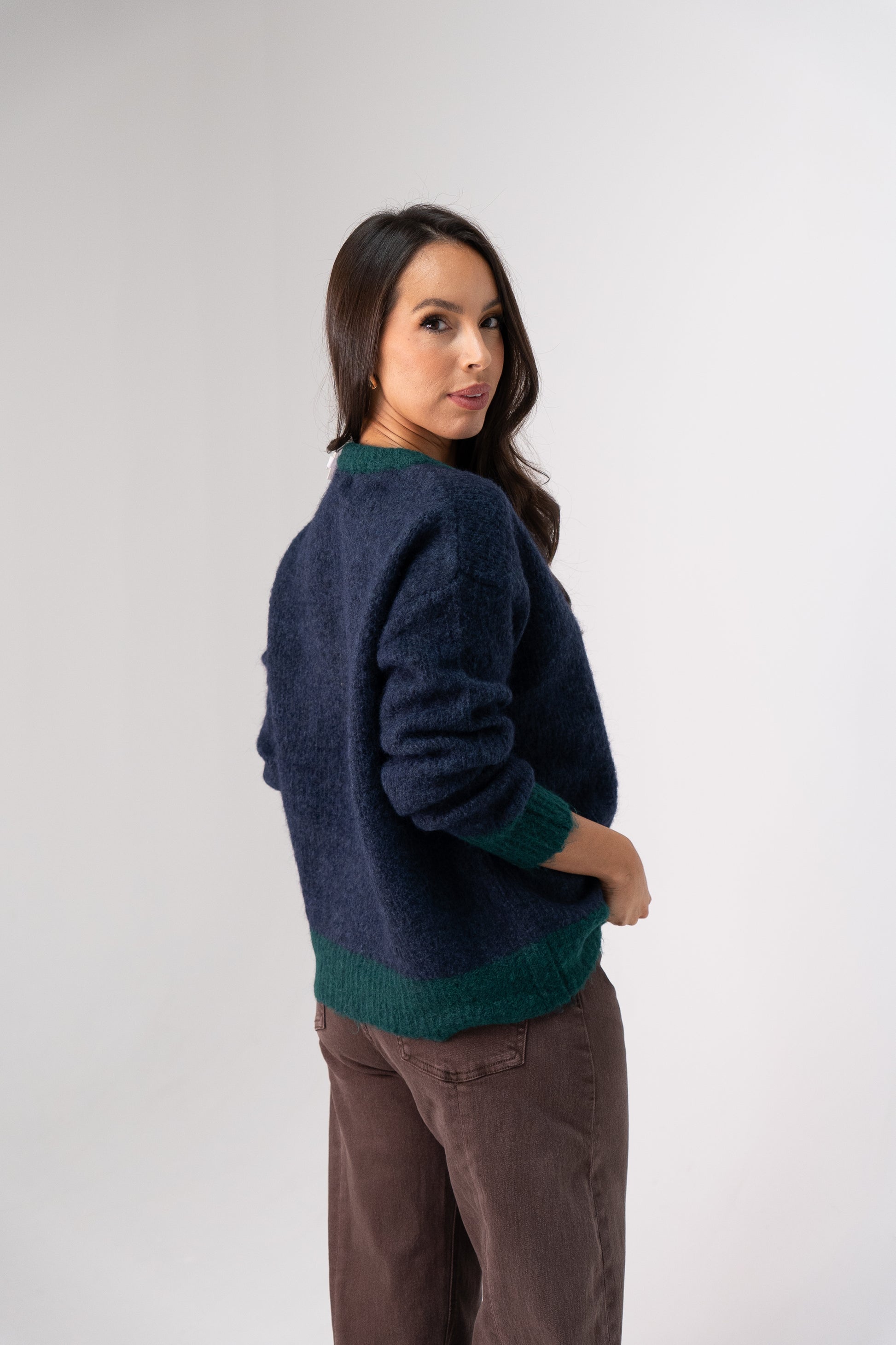 This Kendra Contrast Trim Cardigan in Navy combines classic design with subtle detailing for a refined look. Featuring a round neck and gold button front, it offers elegant closure and style. The drop shoulder and long sleeves provide a relaxed, comfortable fit, while the contrast green trim adds a distinctive touch. Designed to flatter sizes 8-14, this one-size cardigan blends versatility with sophistication, making it a practical and stylish addition to your wardrobe.
