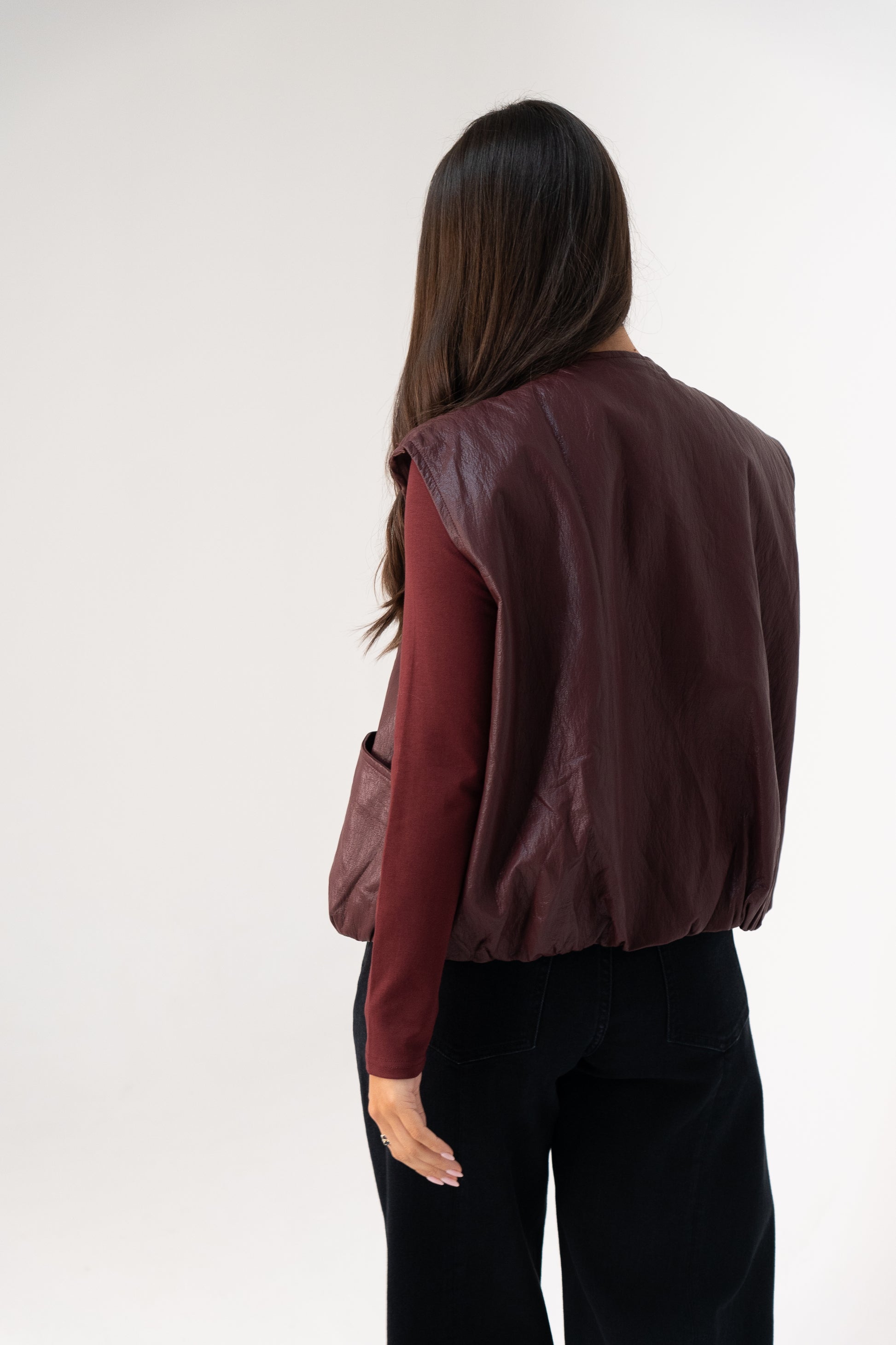 Kendra Faux Leather Sleeveless Jacket In Bordeaux