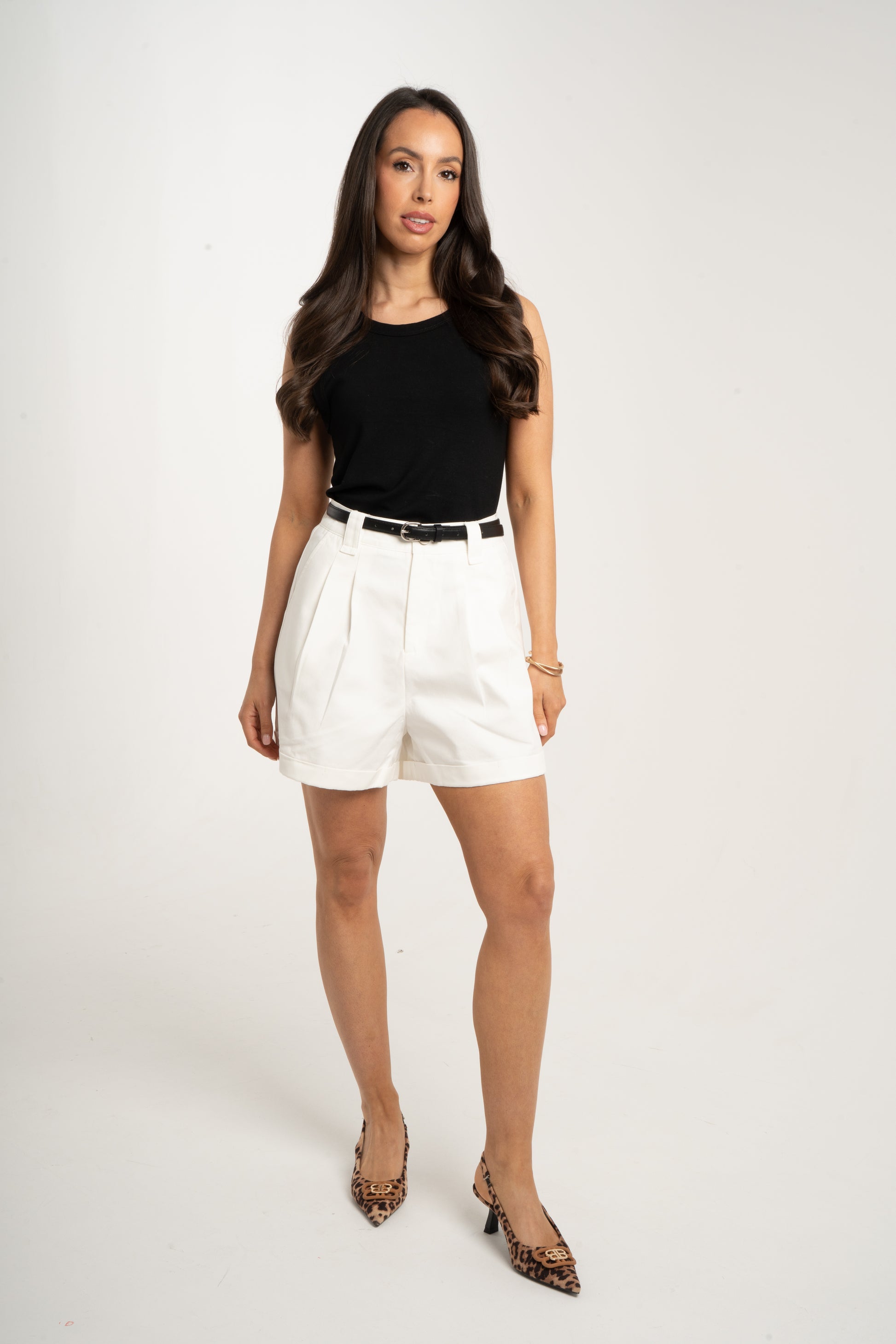 These Kiera High Waist Shorts in White are the perfect combination of style and comfort. The cotton mix fabric and straight leg design offers a comfortable fit while the detachable belt adds versatility. With pockets, belt loops, and a high waist, these shorts are a practical and fashionable choice.