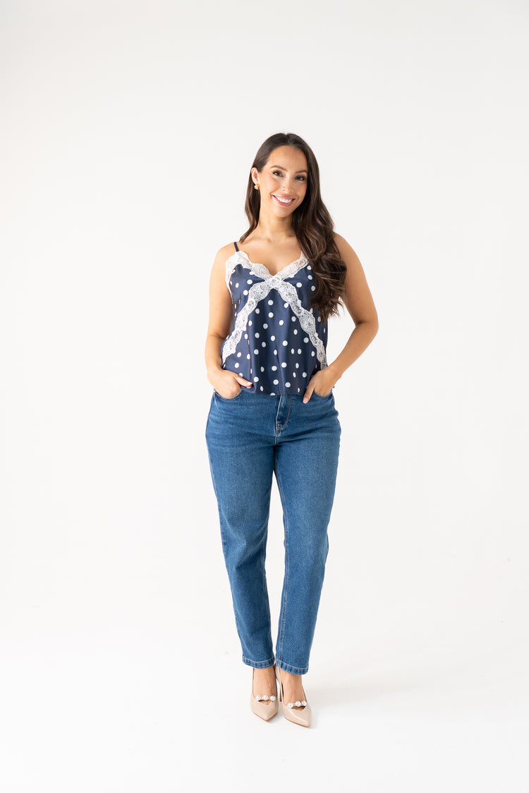 Kiera Polka Dot Cami In Navy