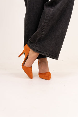 Lauren Faux Suede Cut Out Heel In Yellow