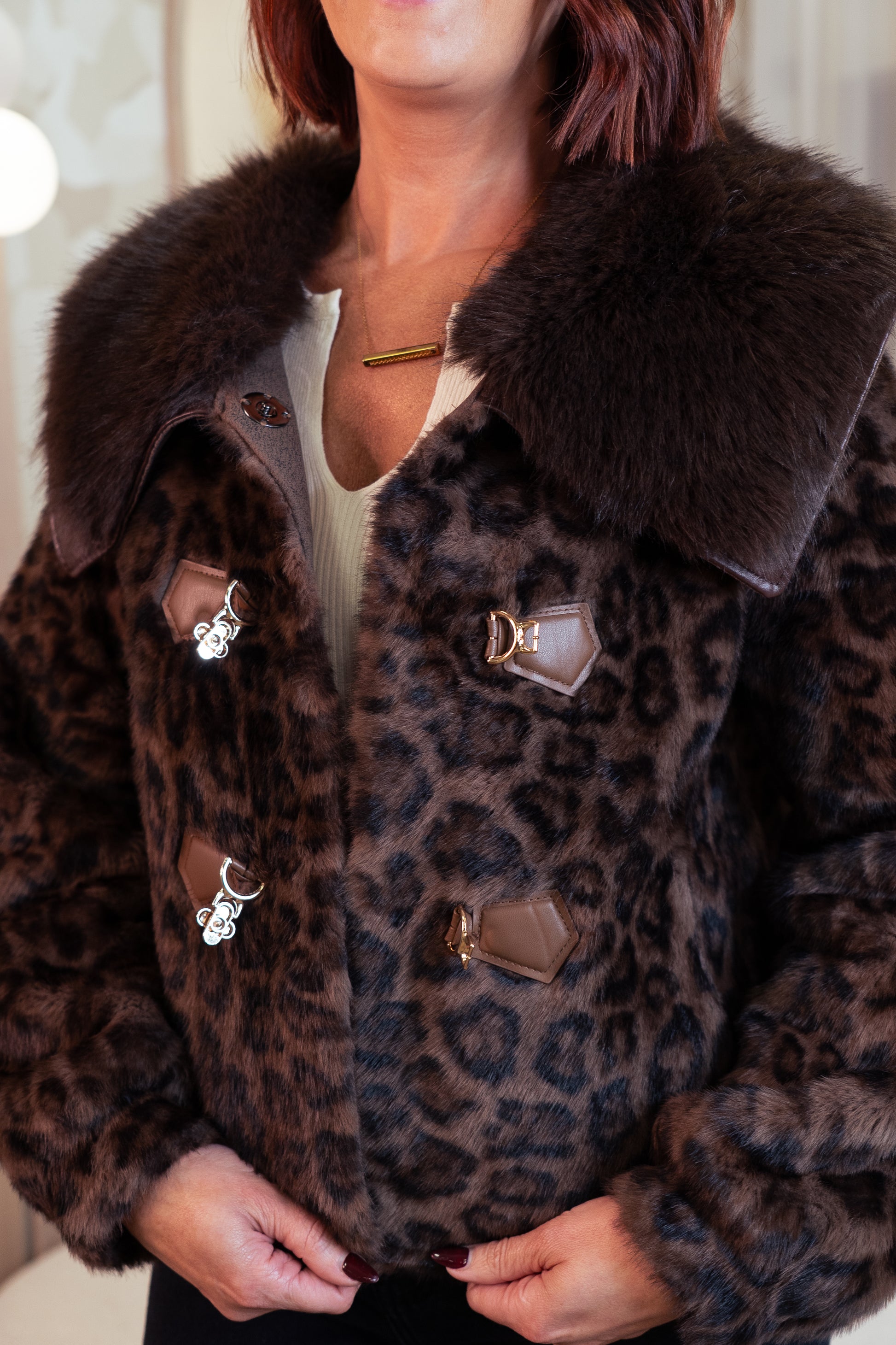 Make a bold statement with the Love Laura faux fur coat in striking leopard print. The synthetic fur delivers luxurious texture with eye-catching animal patterning that commands attention. An oversized collar frames the face dramatically whilst providing additional warmth, and the secure clasp front closure combines functionality with refined detailing. Complete interior lining ensures comfort and structural integrity season after season. Offered in two tailored fits—SM for sizes 6-12 and ML for sizes 12-16—this distinctive piece transforms any ensemble into a fashion-forward moment.