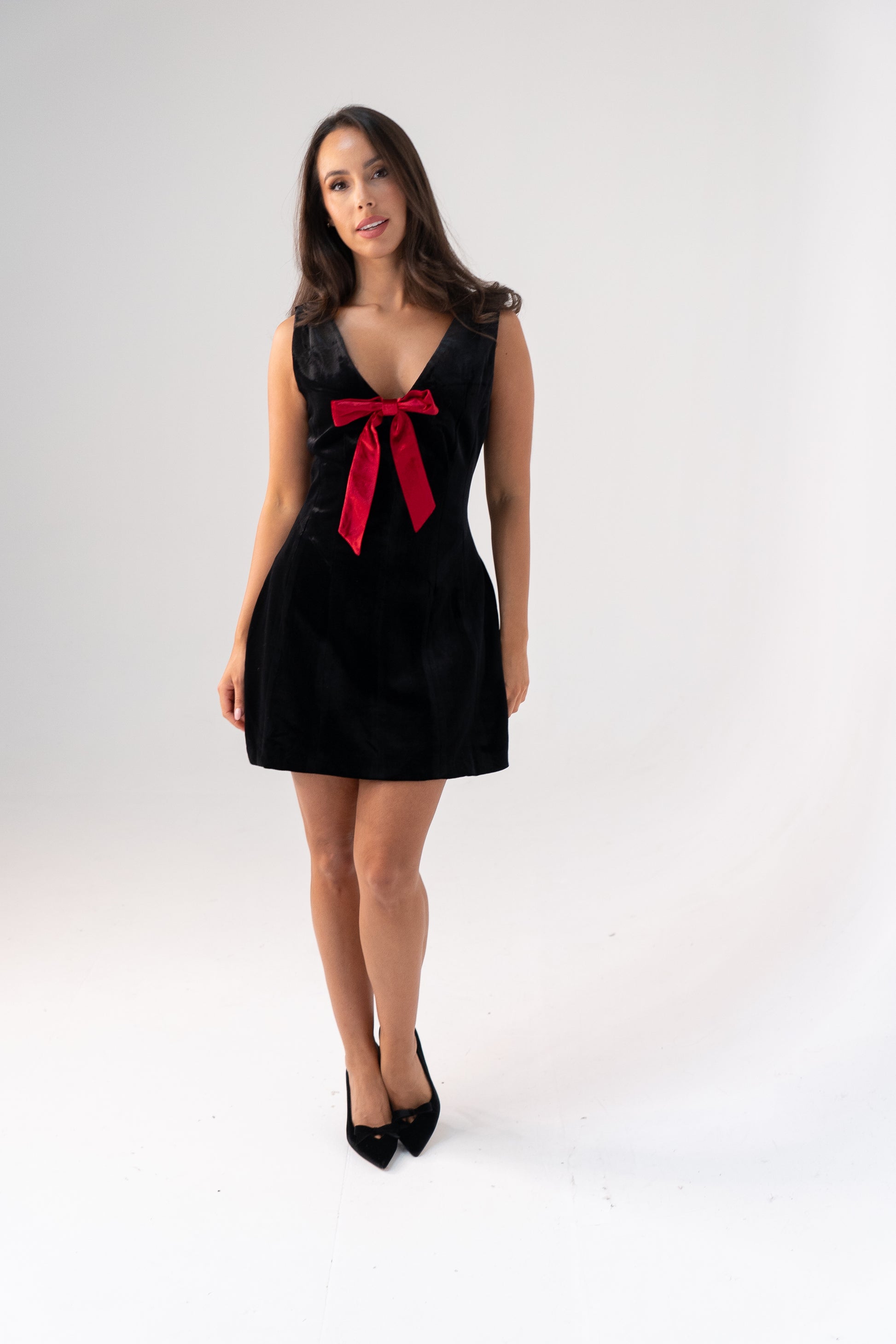 Love Laura Red Bow Velvet Dress In Black