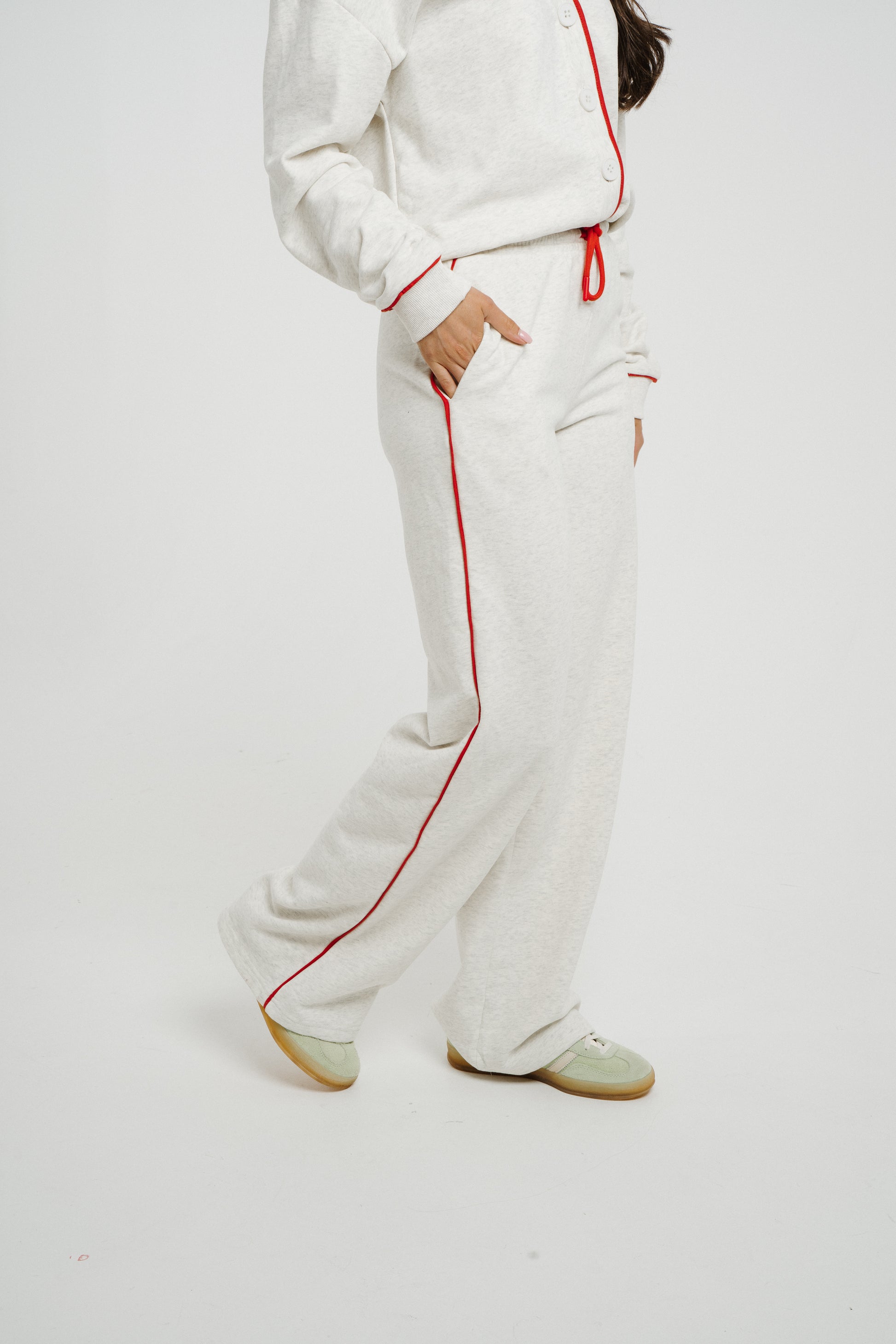 These Love Laura trousers in grey feature a flattering elasticated drawstring waist for a comfortable, adjustable fit. Designed with practical pockets and stylish contrast red piped trim, they combine functionality with a modern edge. Available in sizes 6-18, they offer versatile wear and can be paired perfectly with the matching jacket for a coordinated look.