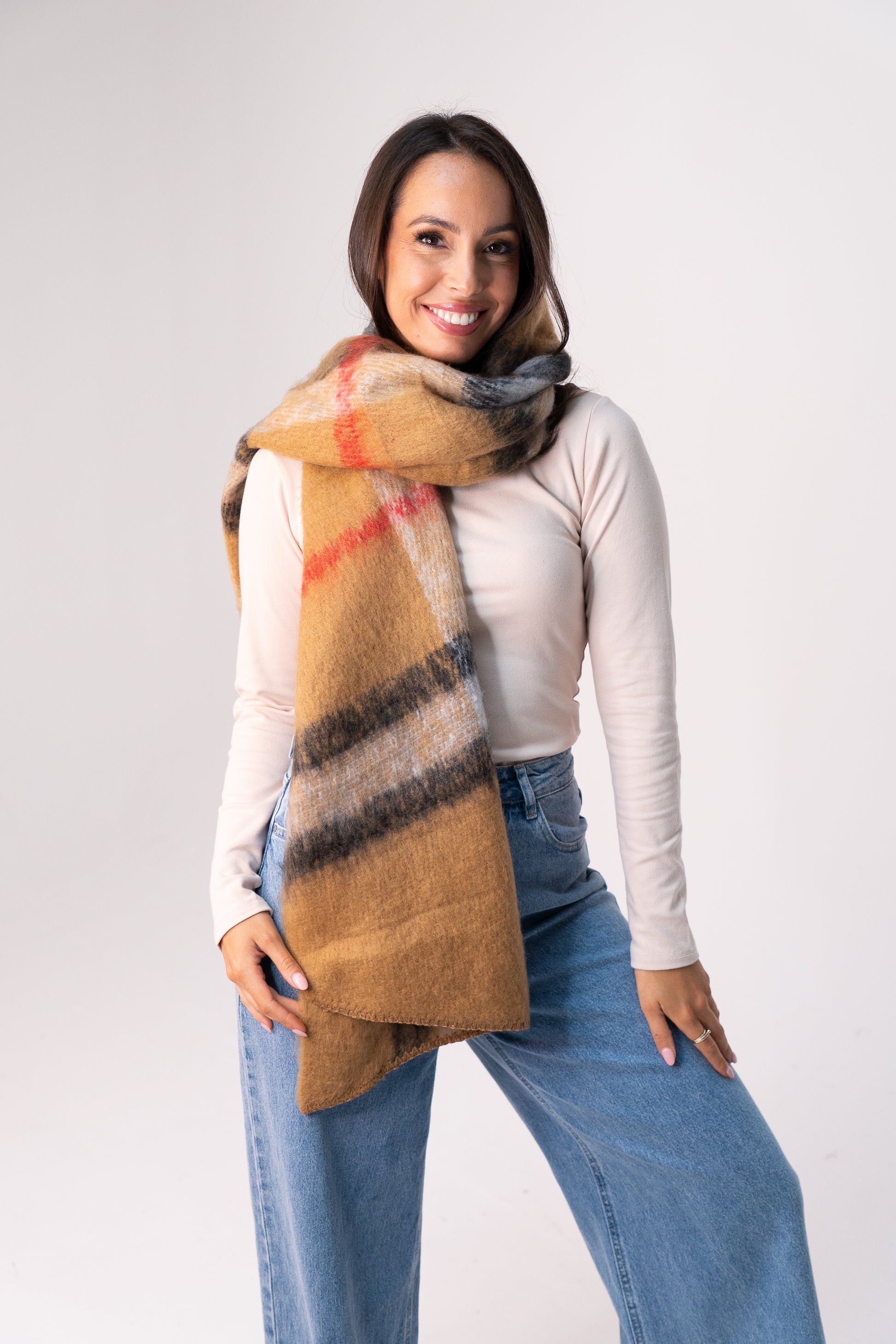 Elevate your accessory collection with this sophisticated Orla Check Scarf, crafted from a luxurious wool mix that delivers exceptional softness and warmth. The timeless check pattern in a versatile beige mix complements any outfit, from casual to formal occasions. Measuring 45cm x 186cm with tapered ends for a refined finish, this one-size scarf drapes beautifully and offers the perfect balance of style and practicality.